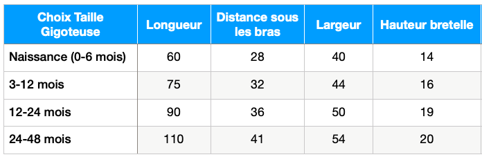 gigoteuse Bébé ou enfant ? Bien choisir la taille